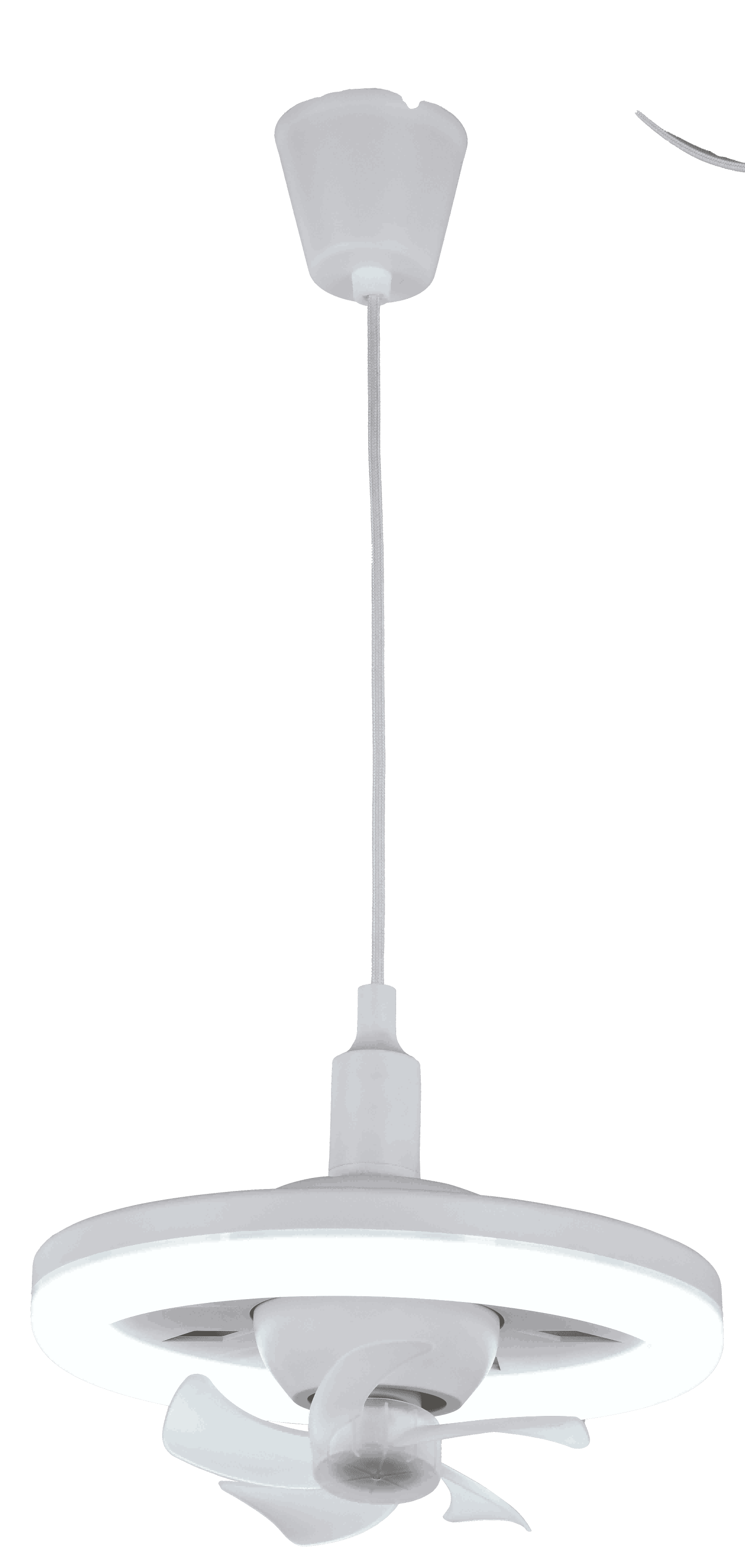 Lámpara de ventilador oscilante para el dormitorio doméstico de tipo E27, ventilador y iluminación en uno, con diámetro Φ300mm. Cuenta con control remoto, soporta la regulación de la velocidad del viento y la regulación de tres niveles de temperatura de color (300K/4000K/6500K), y viene equipada con un enchufe de lámpara colgante de tipo E27.