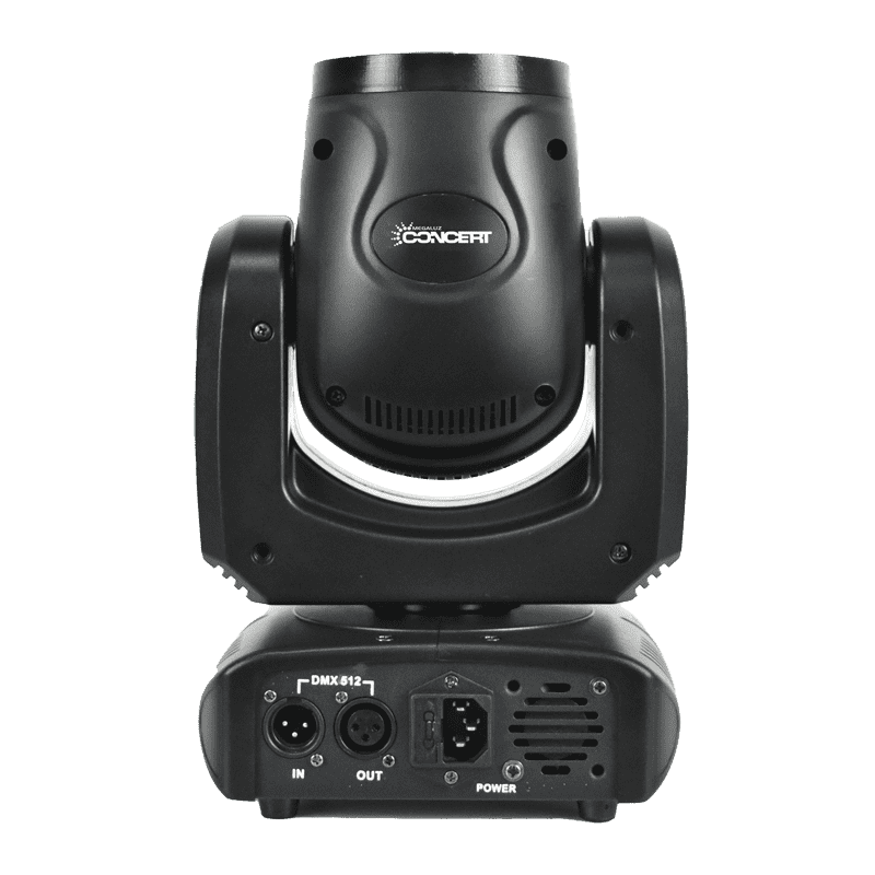Beam LED de 150W con gobos y prismas integrados, dimmer lineal 0–100% y estrobo de 25Hz. Aplicable en teatros, discotecas y shows móviles