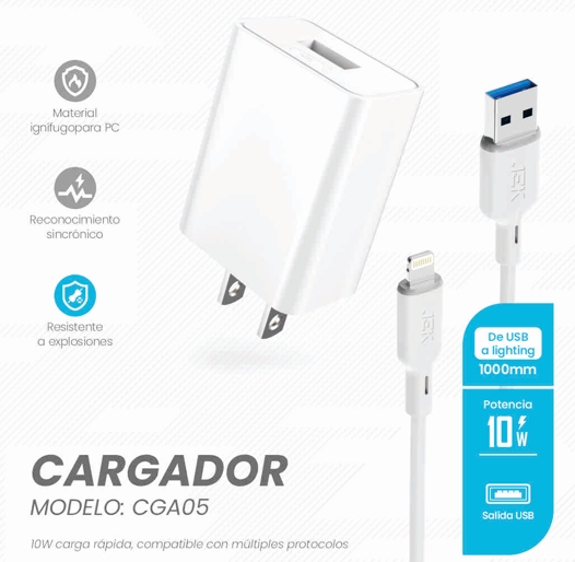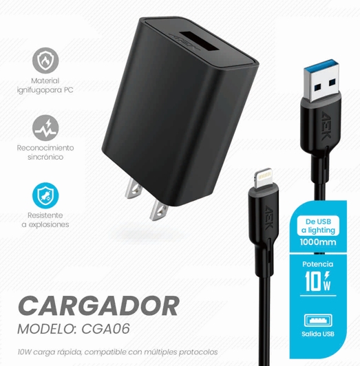10W USB-A to Lightning charger designed for iPhones. Features optimized charging algorithm and durable connector for Apple devices.